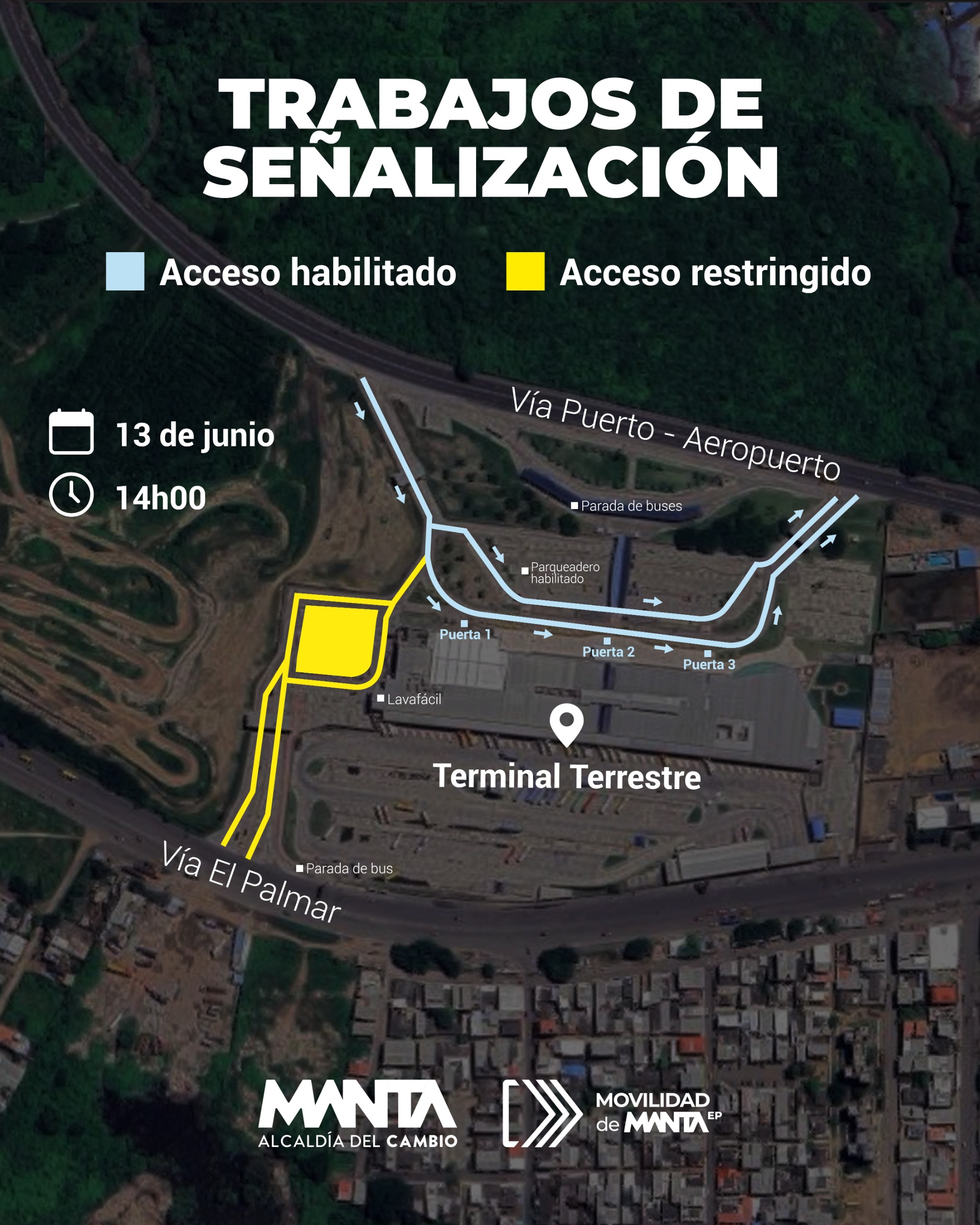 A partir de las 14h00 de este viernes 13 de junio, se iniciarán trabajos de señalización en el parqueadero de la Terminal Terrestre Luis Valdivieso Morán, específicamente en el área de Lavafácil.